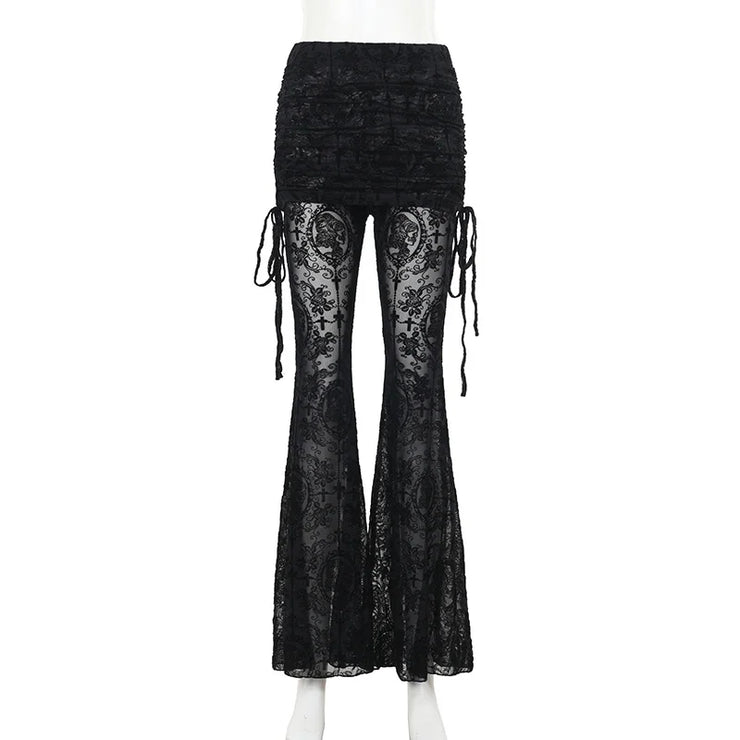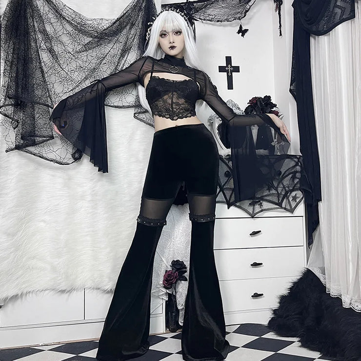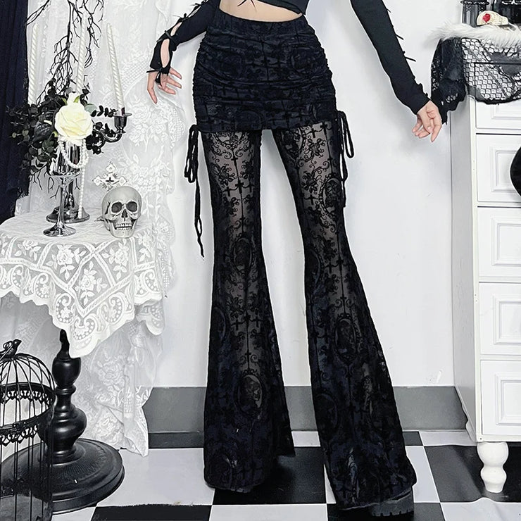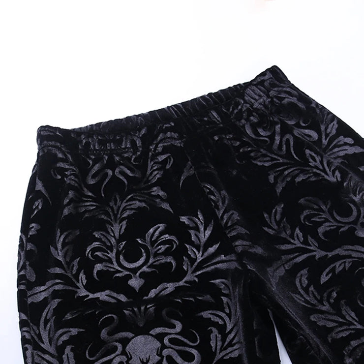 Gothic Dark Fashion Flared Pants Women's Sexy Suede Embossed Long Pant Spicy Girl Trousers