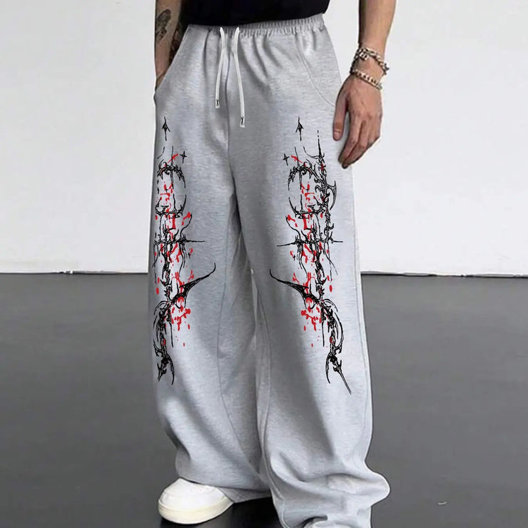 Men's Gothic Dark Style Black and Red Printed Jogging Pants Loose Straight Leg Pants Gothic Street Style Geometric Patterns