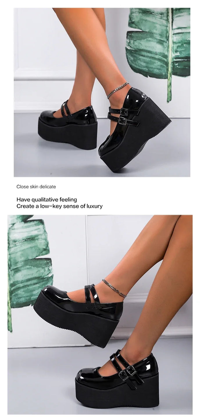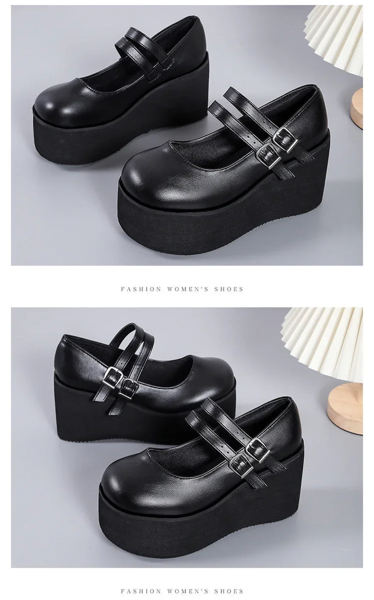 Brand New Female Lolita Cute Mary Janes Pumps Platform Wedges High Heels women's Pumps Sweet Gothic Punk Shoes Woman