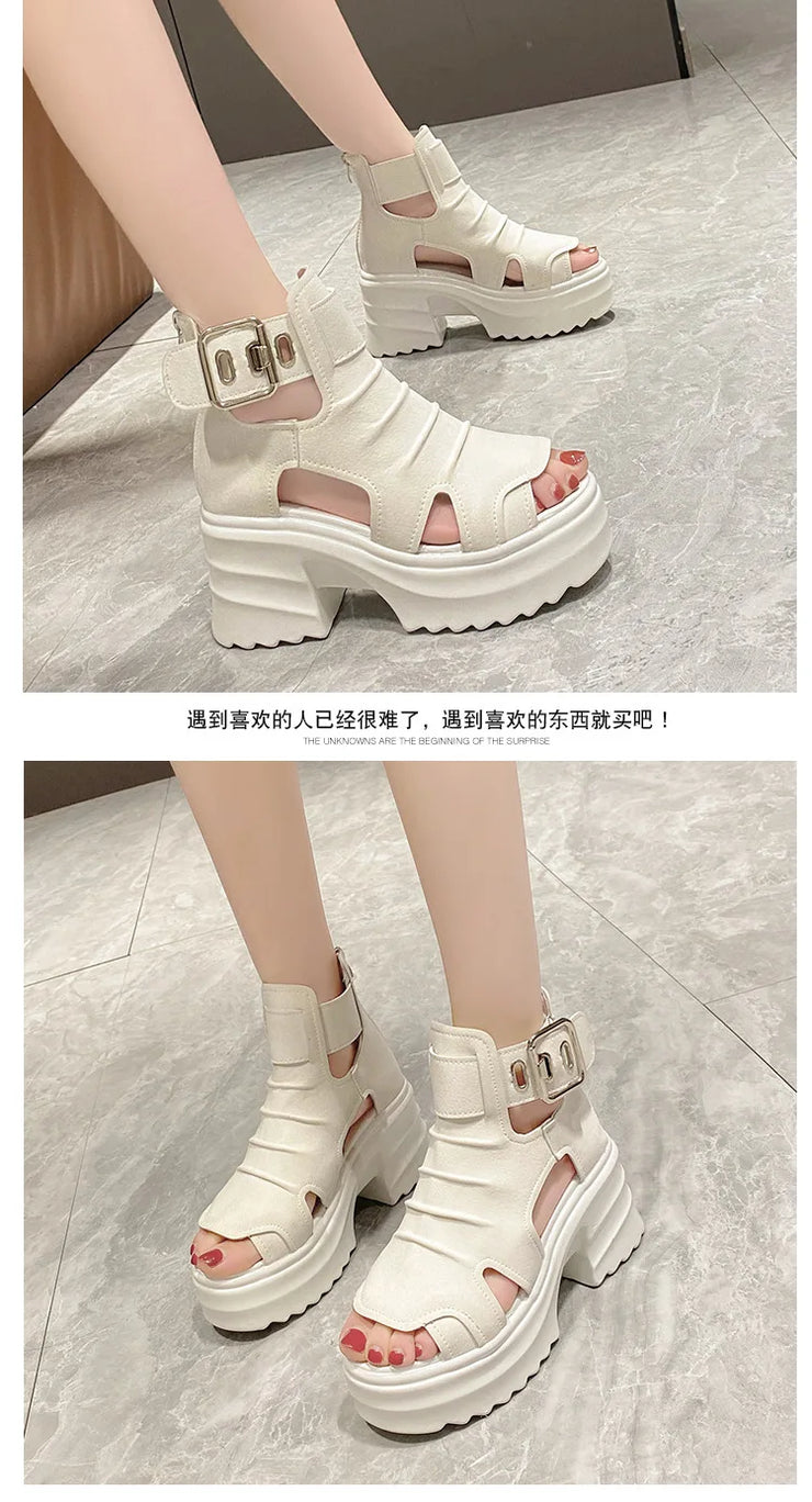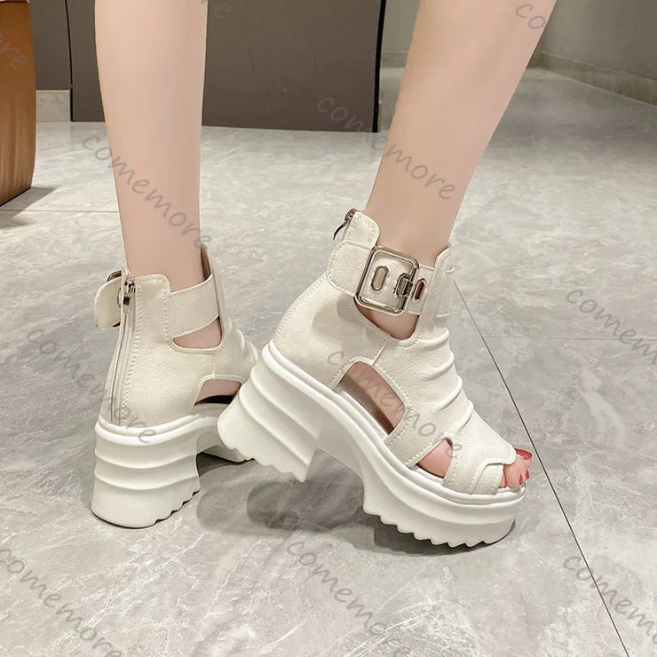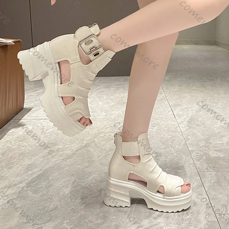 Comemore Gothic Platform Sandals Women Summer Wedges Peep Toe Gladiator Shoes Woman Thick Bottom 8cm High Heels Sandalias Mujer