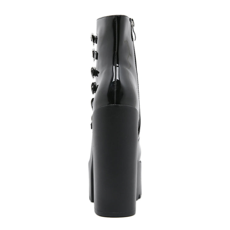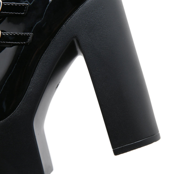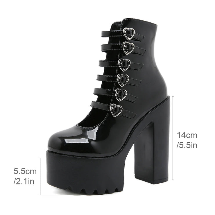 Gdgydh Block Heels Pumps for Women Fashion Multi Buckle Strap Heart Design Dress Shoes Side Zipper High Heels Mary Jane Shoes