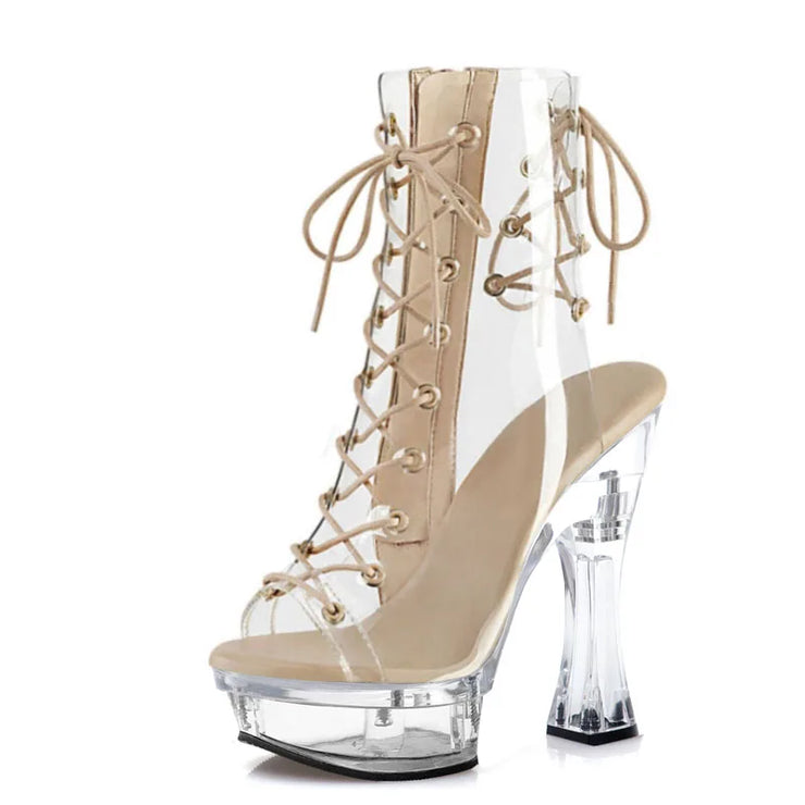 Transparent crystal platform thick heel 14cm lace up pole dance high-heeled fish mouth sandals 5.5 inch high heels