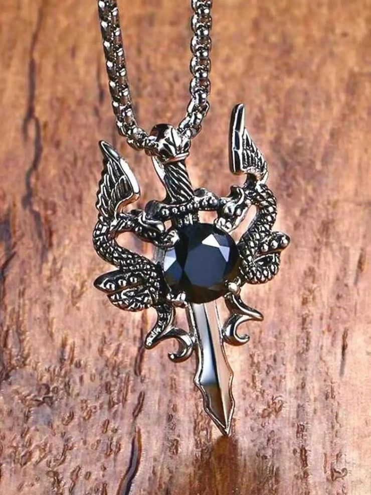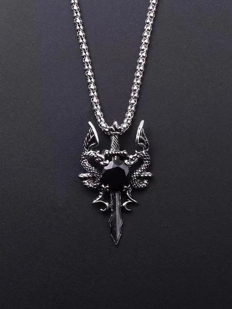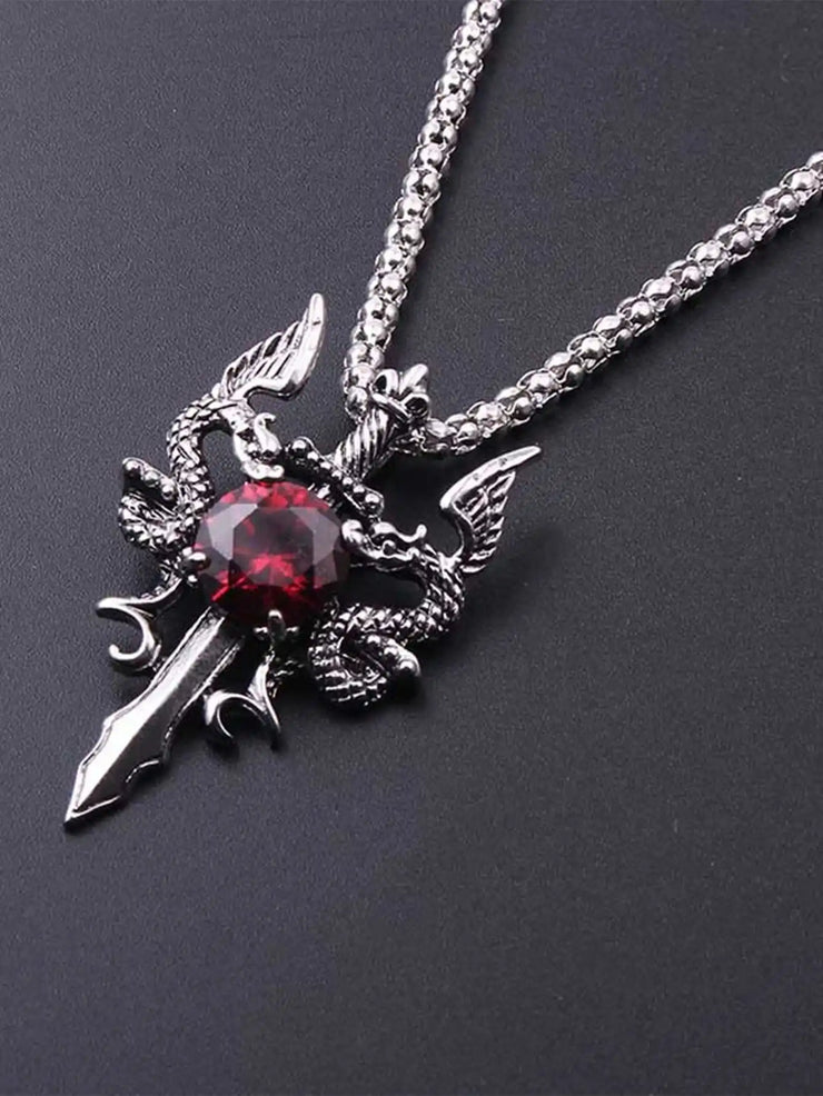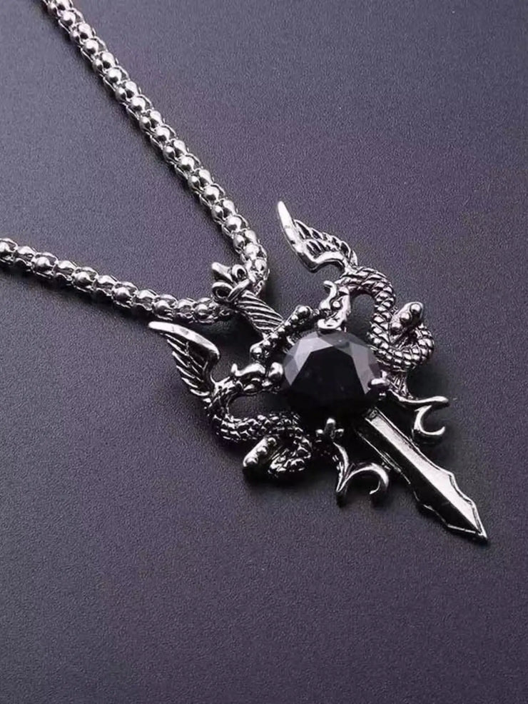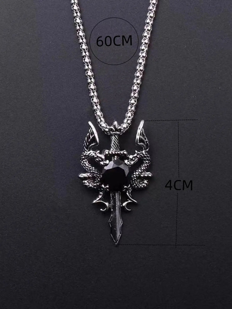 1 Gothic Style Women's Ancient Silver-color Evil Dragon Gem Pendant Necklace Personalized Fashion Street Sweater Chain Jewelry