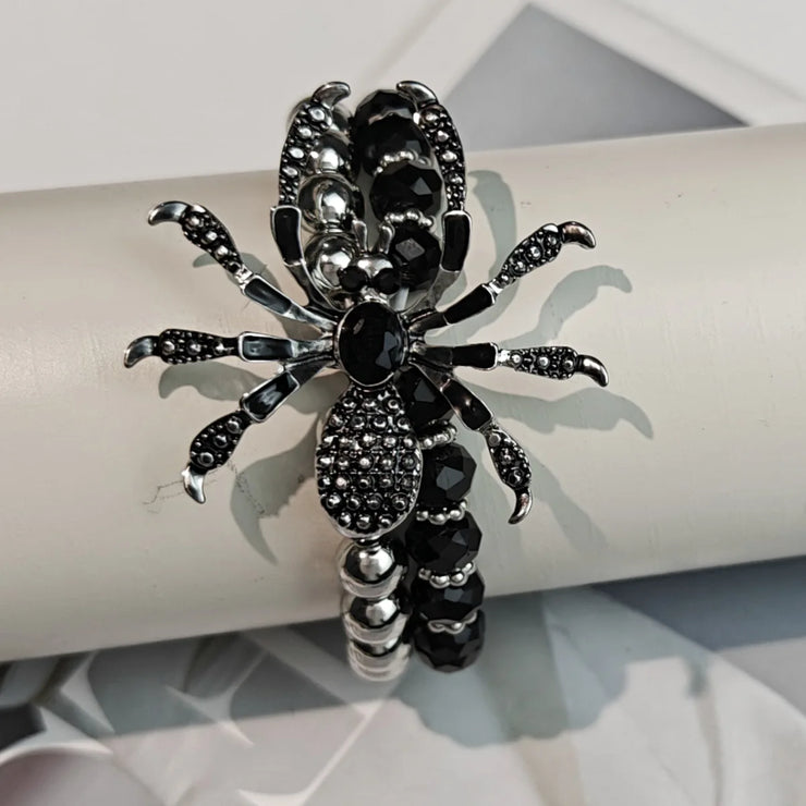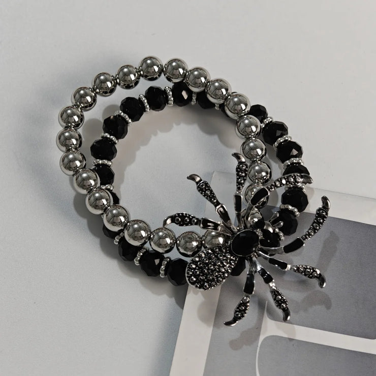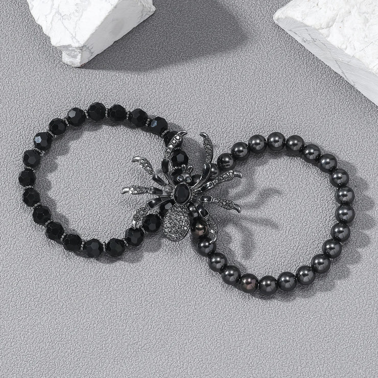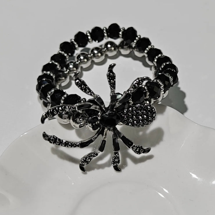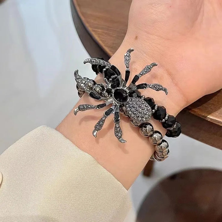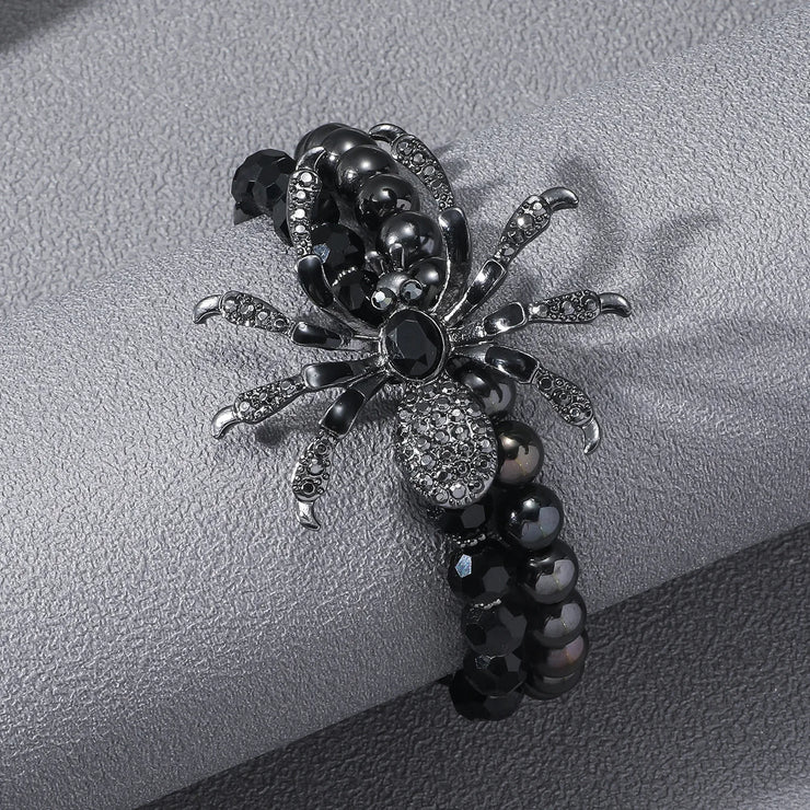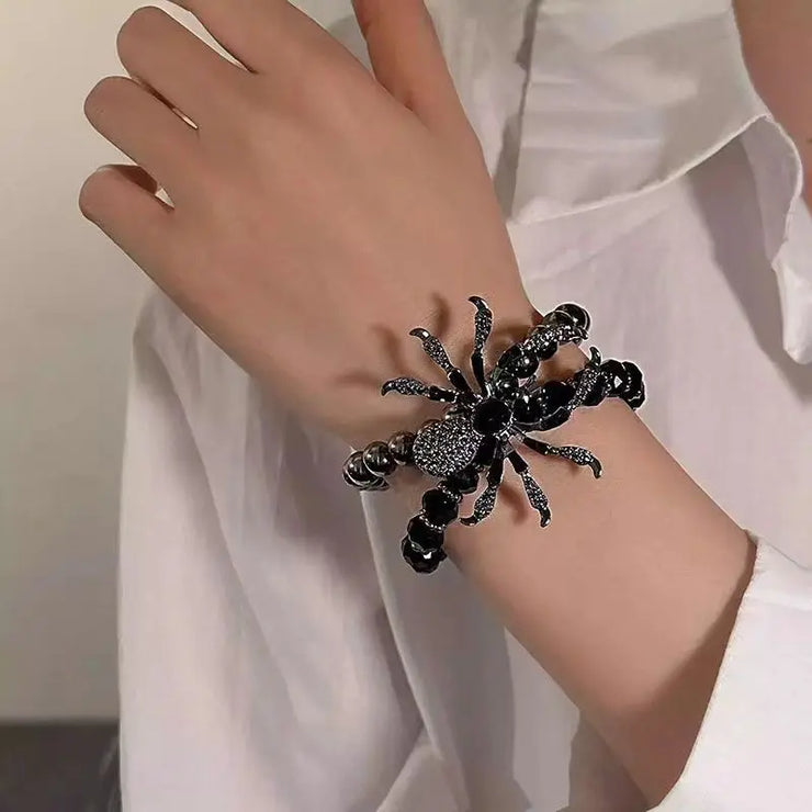 Gothic Dark Spider Necklace Bracelet Ring for Women Exaggerated Black Crystal Spider Halloween Accessories Jewelry Party Gifts