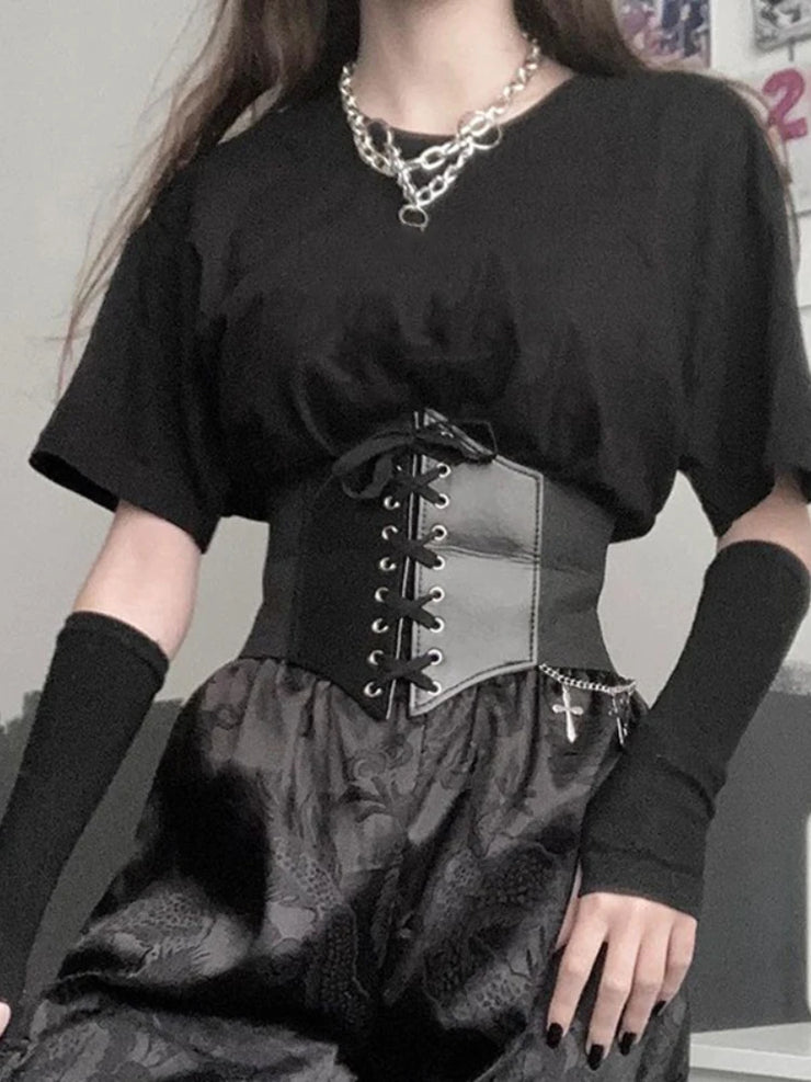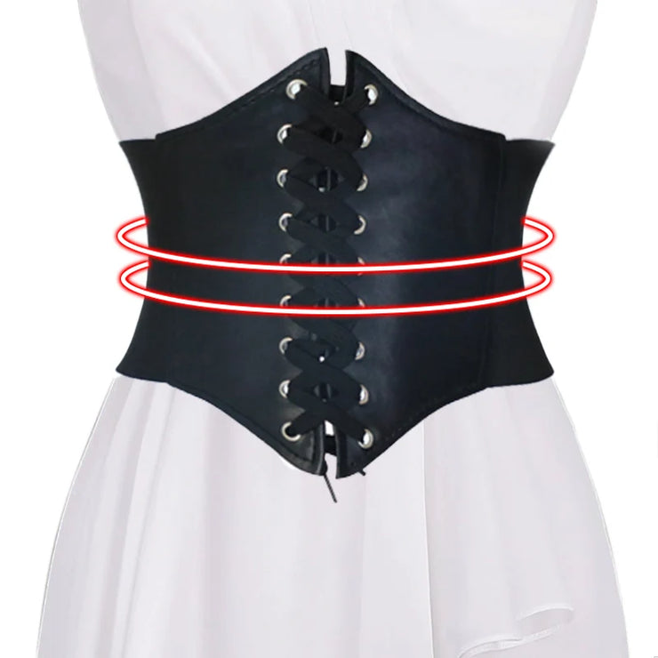 Gothic Women Corset Belt Fashion PU Leather Female Lace-up Corset Belts Slimming Waist Retro Wide Belt for Girl Black Corset Top