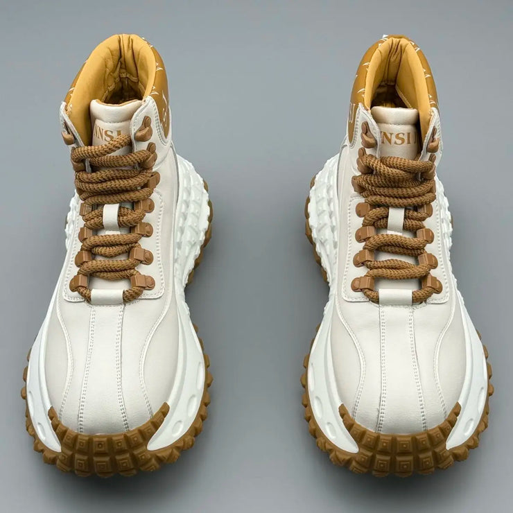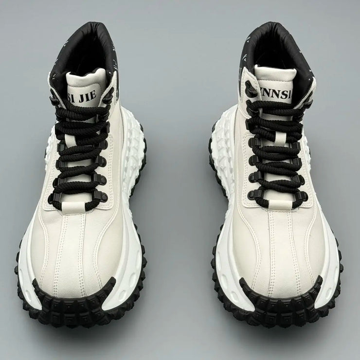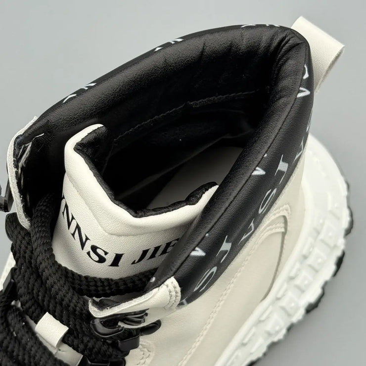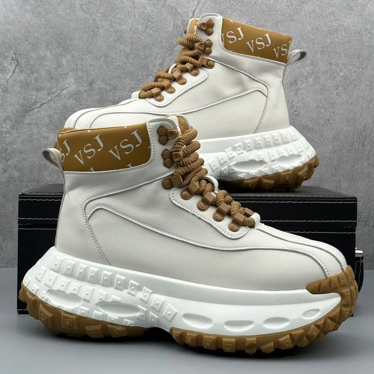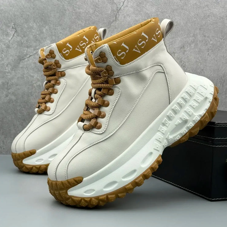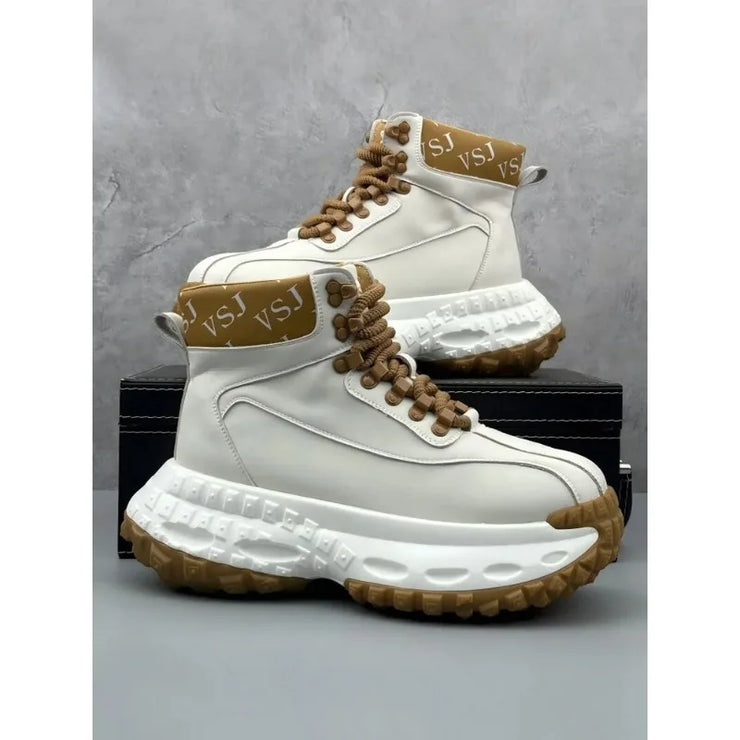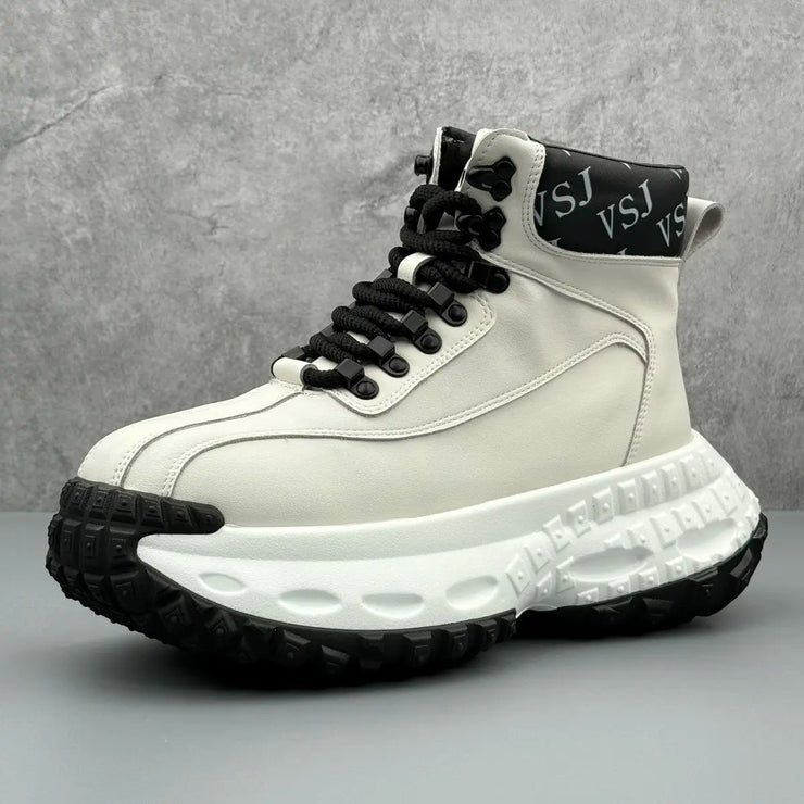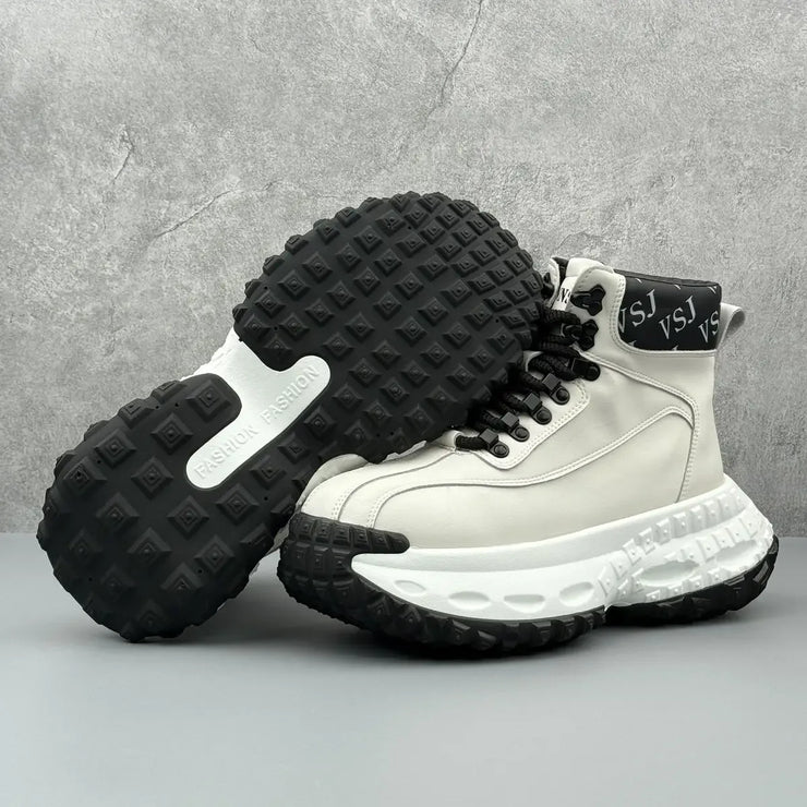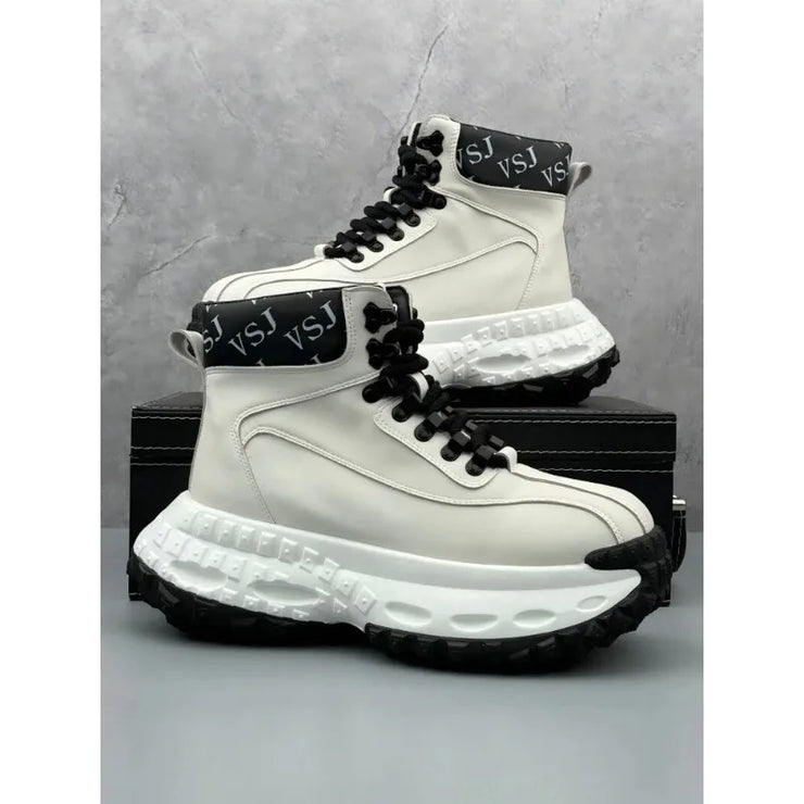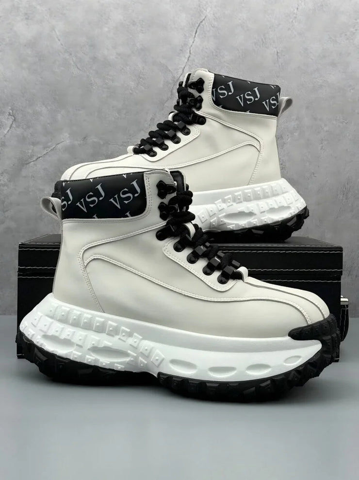 Trendy Men's High-Top Boots Leather Surface Spor Casual Thi Bot Workwear oes round Toe Flat Heel Pure Color