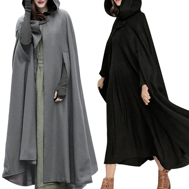 Winter Cloak Hooded Trench Coat Women Gothic Cape Women Trench Coat Open Front Cardigan Jacket Coat Cape Cloak Poncho Plus